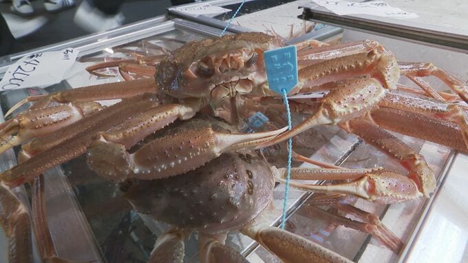 金沢市の近江町市場は旬を迎えた日本海の味覚を求め多くの観光客が訪れにぎわいを見せています。
