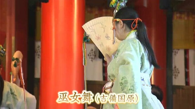 神前では、2人の巫女が「吉備国原」という巫女舞を披露し奉納しました。