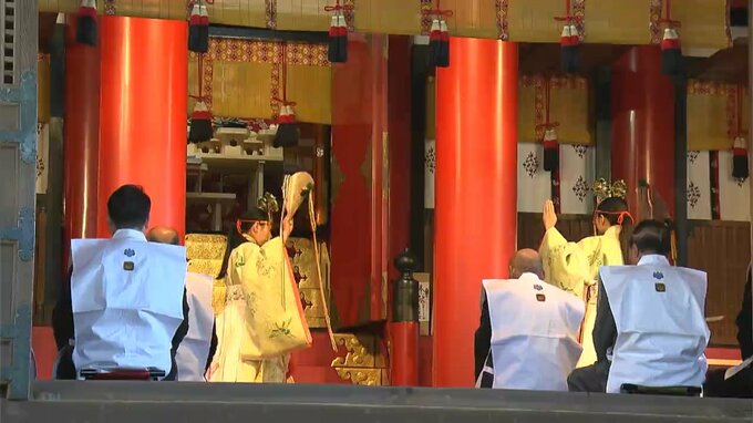 岡山市北区の吉備津神社は、国宝の本殿・拝殿が再建されて今年で600年になります。その節目を記念した奉祝大祭がきょう(22日)行われ、朝から多くの参拝客が訪れました。