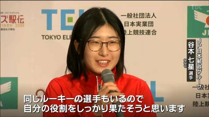 JP日本郵政グループ・谷本七星(ななせ)選手:「今年の目標が2連覇に挑戦ということなんですけども、同じルーキーの選手もいるので自分の役割をしっかり果たそうと思います。」