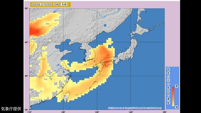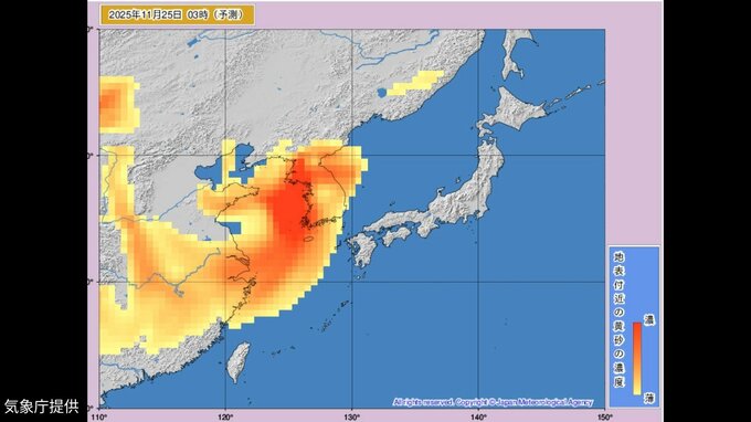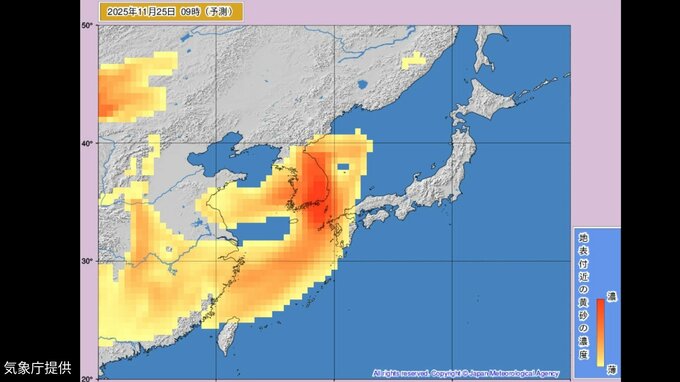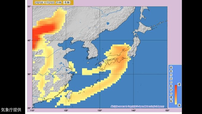 未明にはまだ日本列島には飛来していませんが、午前9時には九州地方と山口県、午後3時には中国・四国地方、午後9時近畿・北陸・東海地方に飛来するとみられます。