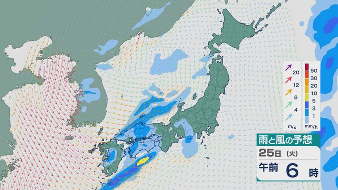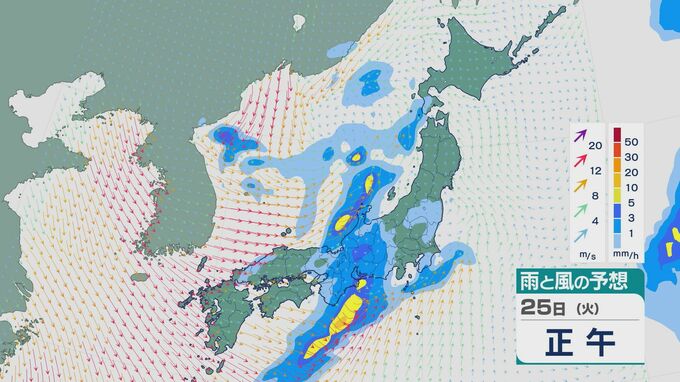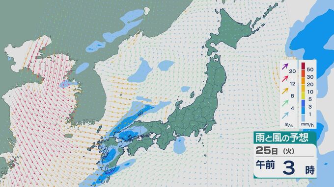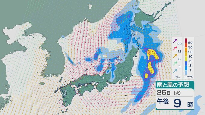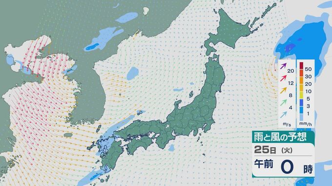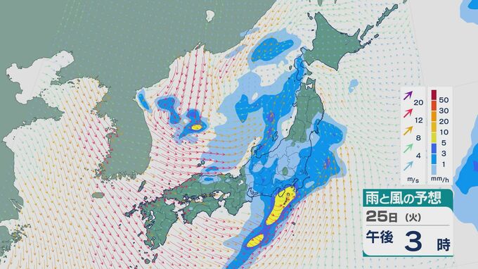 3連休明けは荒れる天気のところも 低気圧が日本海を通過 25日(火)は日本海側を中心に急な強い雨や落雷に注意を 雨と風シミュレーション 北陸放送 2025年11月22日(土) 18:50 国内 25日の雨と風の予想ですが、低気圧が日本海を東に進み、午前中は西日本で、午後からは東日本や北日本で雨の降り方が強まりそうです。 太平洋側でも雨が降る見込みですが、北陸や東北の日本海側では夜にかけても雨、風ともに強い状態が続きそうです。