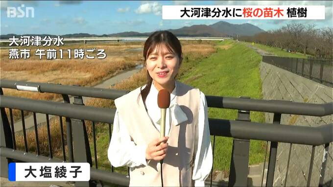 燕市の大河津分水では、関係者らによって桜の苗木18本が植えられました。