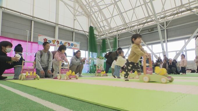 人気を集めたのは、幼児を対象にした手押し車のカタカタレースや、赤ちゃんのハイハイを競うレースです。