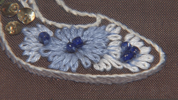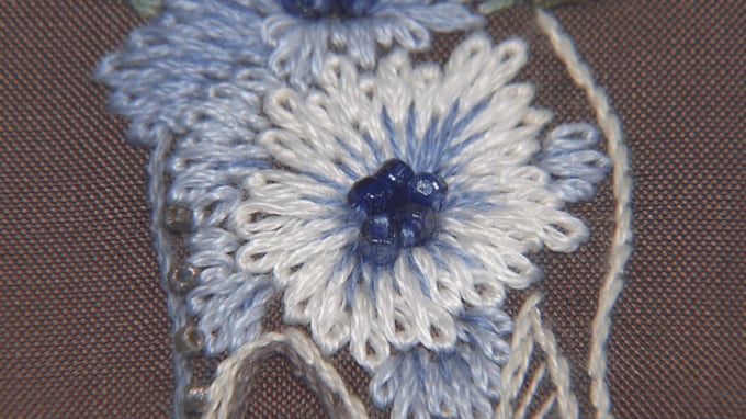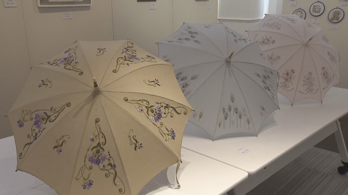 色鮮やかな糸、さらにビーズなども使って、様々な図案を描き出す「フランス刺繍」。作品展は刺繍アート教室を行っている「テゲの会」のメンバーが、フランス刺繍の魅力を更に広めていこうと開催しました。