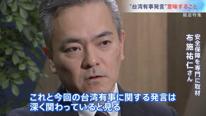 「高市総理が、就任早々に所信表明の中で防衛費の更なる増額を表明した。これと今回の台湾有事に関する発言は深く関わっていると見ています。日本の防衛だけでなく、この地域の防衛もアメリカに頼らず日本にやってほしいというアメリカの思惑がある」