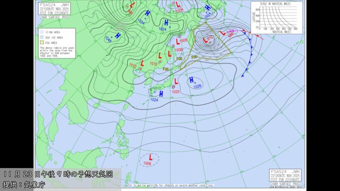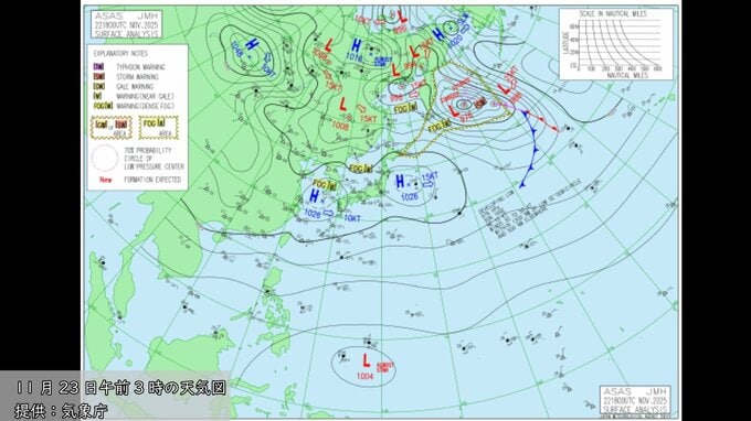【画像②】はきょう(23日)午前3時の実況天気図です。