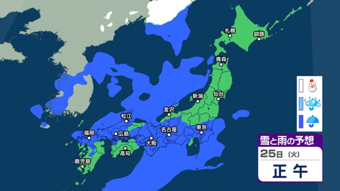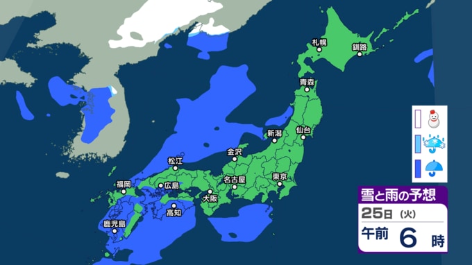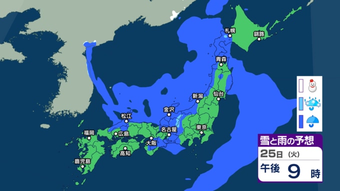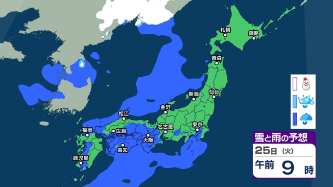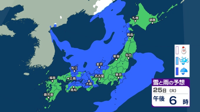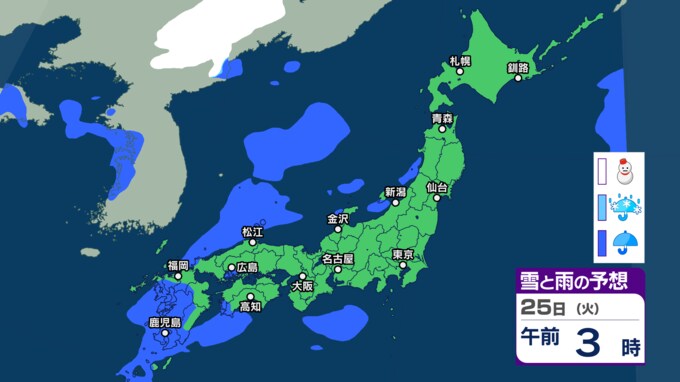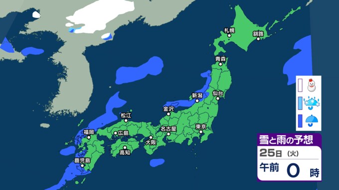 26日(水)の雨と雪のシミュレーション