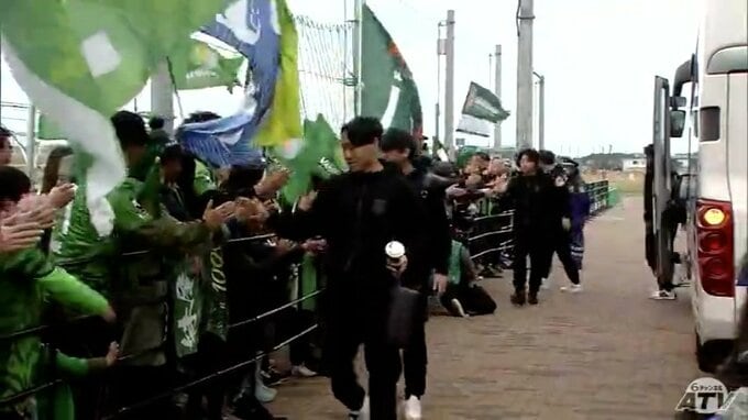 サッカーJ3ヴァンラーレ八戸はJ2昇格をかけて、23日午後1時から讃岐と対戦します。※新井宇輝アナウンサー「ヴァンラーレ八戸の選手たちが乗っているバスが到着しました。J2昇格を願うサポーターの声援を受けな…