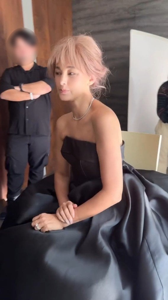動画には撮影の舞台裏も収められており、黒いロングドレスを着た梅宮さんの姿や、スタッフとの打ち合わせの様子も確認できます。