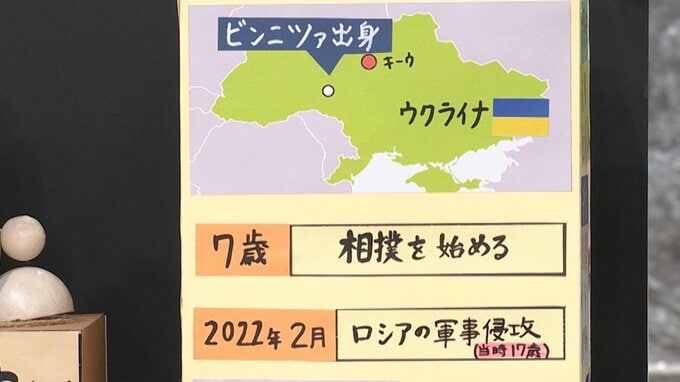 安青錦は、ウクライナ中部の町・ビンニツァ出身の21歳。相撲が人気のウクライナで7歳から相撲を始めました。2022年、ロシアの軍事侵攻を受けて18歳以上の男性の出国が制限され、当時17歳の安青錦は来日を決断します。