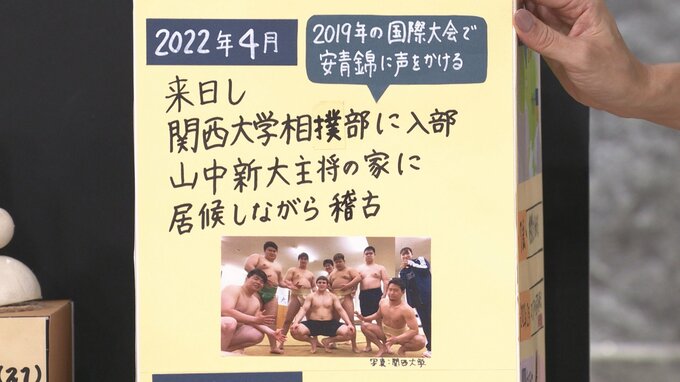 このときお世話になったのが、2019年に日本で開催された国際大会であまりにも強い安青錦に声をかけた、関西大学の相撲部でした。主将の山中新大さんの家に居候しながら稽古を続け、8か月後、安治川部屋に入門します。