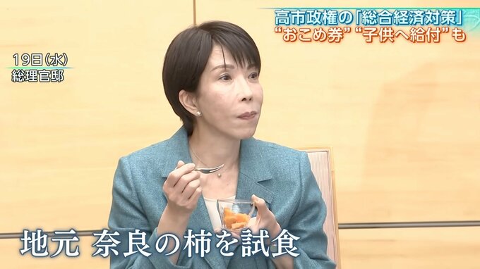 19日、地元・奈良の柿を試食した高市総理は...