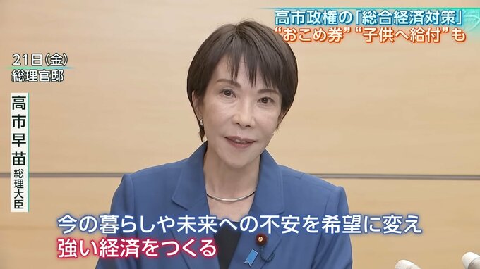 どんな未来を拓くのか。それが問われるのが、21日に閣議決定した「総合経済対策」。地方交付金に特別枠を設け、台東区などで独自に始めている「おこめ券」などの配布を自治体に求めます。