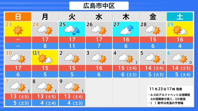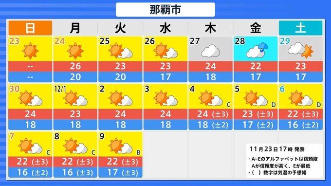 【台風情報】11月も終盤なのに...新たな「台風のたまご=熱帯低気圧」あす(24日)発生か? 今後台風に発達する?全国各地の天気シミュレーション【気象庁 23日午後7時更新】 RSK山陽放送 2025年11月23日(日) 19:00 国内 全国各地の今後の天気は? 札幌・仙台・東京・名古屋・大阪・広島・福岡・沖縄の向こう16日間の天気予報です。 今後の気象情報に注意してください。