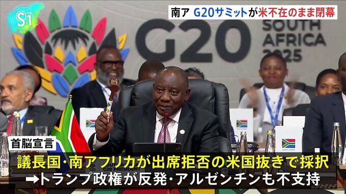 南アフリカのヨハネスブルクで開かれていたG20=主要20か国・地域の首脳会議が23日、アメリカ不在のまま閉幕しました。G20サミットは2日間の日程で気候変動や災害対策などについて協議し、地球規模の課題に多国間で…