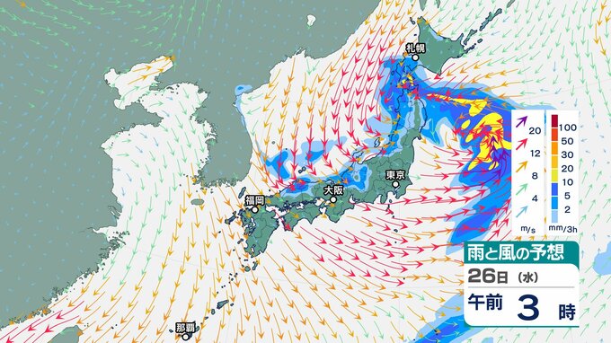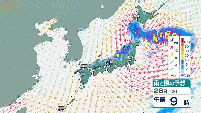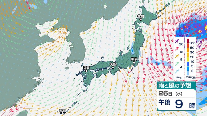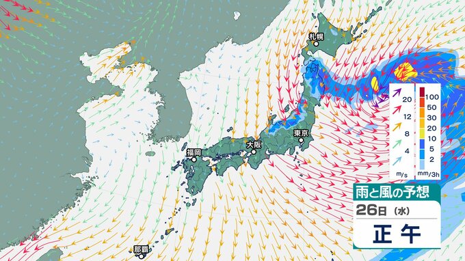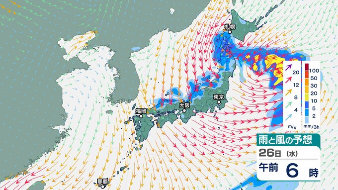 【気象情報】上空に氷点下 24~27℃以下の強い寒気…北日本~西日本 26日にかけ大気の状態は非常に不安定【雨風シミュレーション】落雷・竜巻・ひょうに警戒 チューリップテレビ 2025年11月24日(月) 09:15 国内 天気 26日(水)雨と風のシミュレーション画像