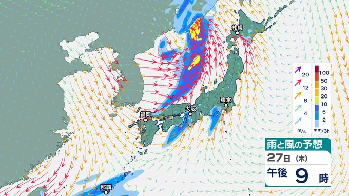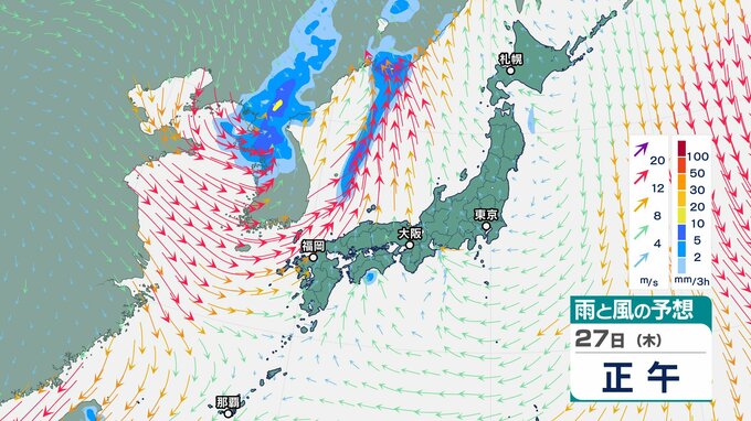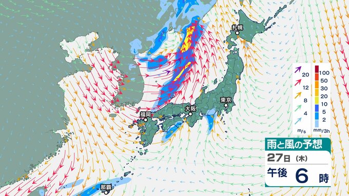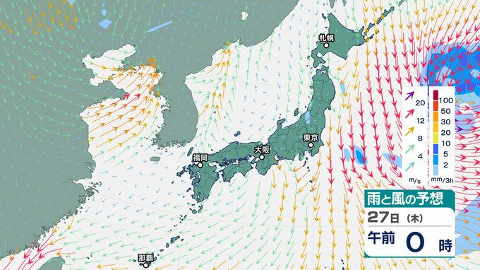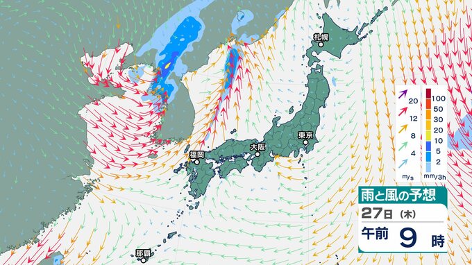 【気象情報】上空に氷点下 24~27℃以下の強い寒気…北日本~西日本 26日にかけ大気の状態は非常に不安定【雨風シミュレーション】落雷・竜巻・ひょうに警戒 チューリップテレビ 2025年11月24日(月) 09:15 国内 天気 27日(木)雨と風のシミュレーション画像