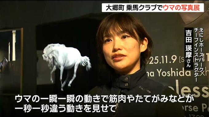 えにしホースパーク・チーフインストラクター 吉田瑛摩さん:「馬の一瞬、一瞬の動きで筋肉やたてがみなどが一秒、一秒違う動きを見せて、光がきれいと思った瞬間を見つけてすぐ撮れるようにしている。」