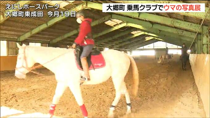 サラブレッドなど乗馬クラブで飼育されているウマの姿を捉えた写真展が大郷町で開かれています。