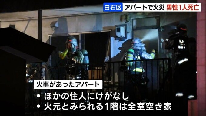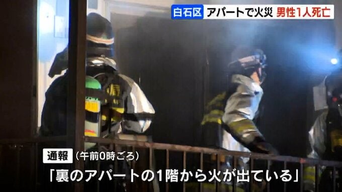 24日未明、札幌市白石区のアパートで火事があり、2階の部屋から男性1人の遺体が見つかりました。