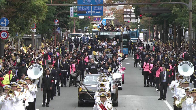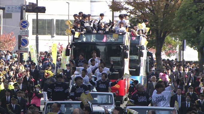 5年ぶりの日本一に輝いた福岡ソフトバンクホークスの優勝祝賀パレードが福岡市で開かれ、沿道には多くのファンが詰めかけました。