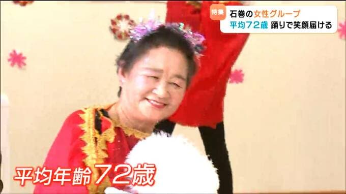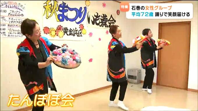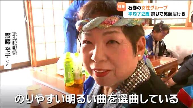 音楽に合わせコミカルに踊ります。石巻市の女性ボランティアグループ、
