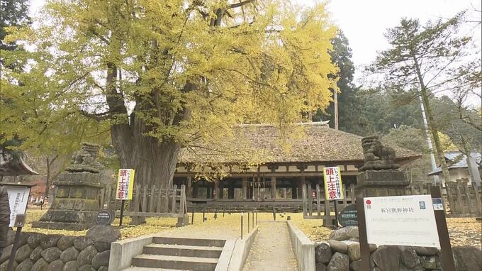 連休最終日の24日、福島県喜多方市では長床(ながとこ)の大イチョウを一目見ようと多くの人たちが訪れています。喜多方市にある国指定重要文化財、新宮熊野神社の拝殿「長床」。その目の前にそびえ立つのは高さお…