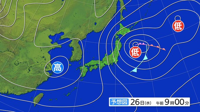 26日は、西高東低の冬型気圧配置に変わるでしょう。