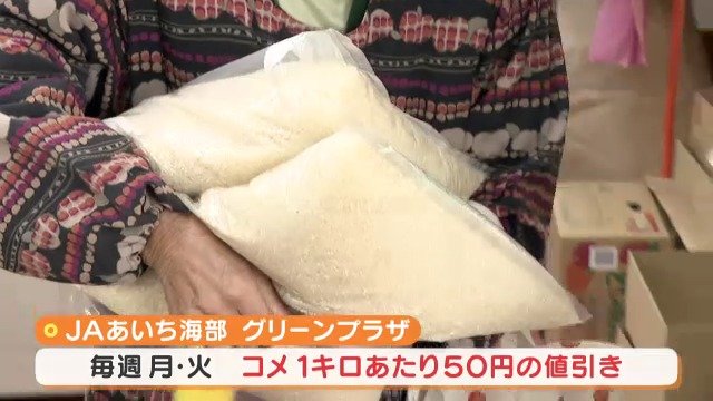 実はこちらの「JAあいち海部 グリーンプラザ」は、毎週月曜日と火曜日にコメ1キロあたり50円の値引きが行われているんです。
