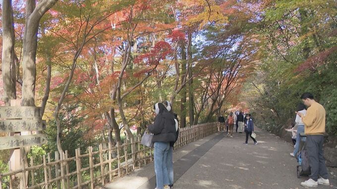 園内の木々も徐々に色づき始める中、深まる秋を楽しむ人たちも。