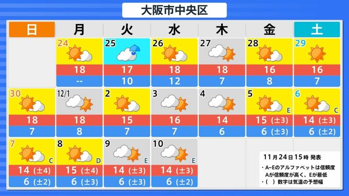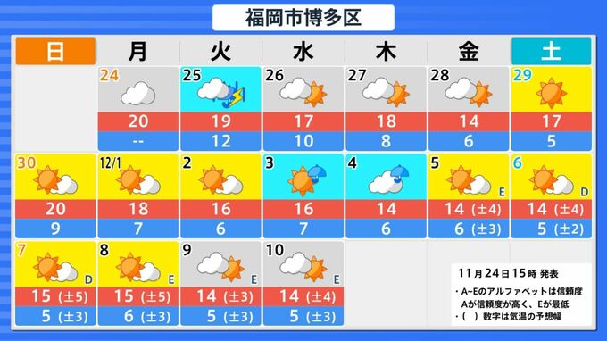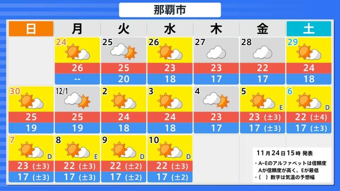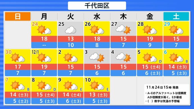 【台風情報】11月下旬なのに...「台風のたまご」熱帯低気圧が発生 24時間以内に「台風」へ 今後の進路は? 全国各地の天気シミュレーション【気象庁 24日午後6時半更新】 RSK山陽放送 2025年11月24日(月) 18:30 国内 全国各地の今後の天気は? 【画像②~⑨】は、札幌・仙台・東京・名古屋・大阪・広島・福岡・沖縄の向こう16日間の天気予報です。 【画像②】 【画像③】 【画像④】 【画像⑤】 【画像⑥】 【画像⑦】 【画像⑧】 【画像⑨】 今後の気象情報に注意してください。
