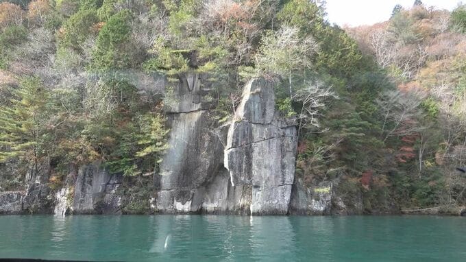 遊覧船の窓からは、そそり立つ岩を彩る紅葉が。30分ほどのクルーズを、きのうは1300人以上が楽しんだそうです。