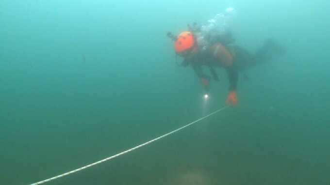 2人1組になって、海中に設置したロープを手繰りながら見落としがないように捜索。