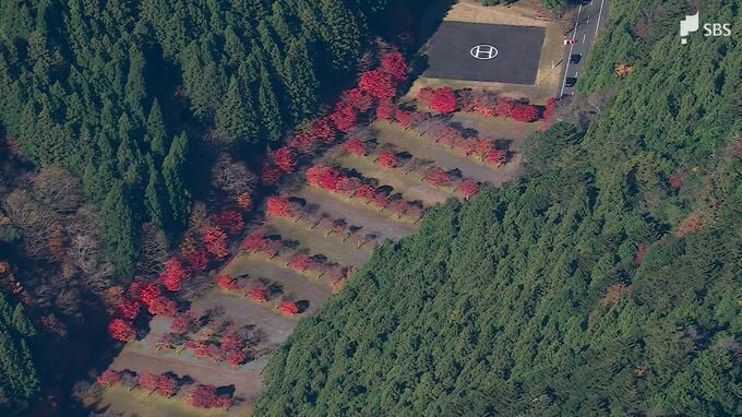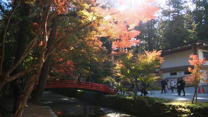 御殿場市にある皇室ゆかりの邸園「秩父宮記念公園」です。2025年は、色付きが例年よりもやや遅いということですが、日の当たる部分を中心に紅葉が進んでいました。
