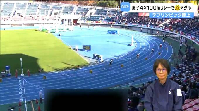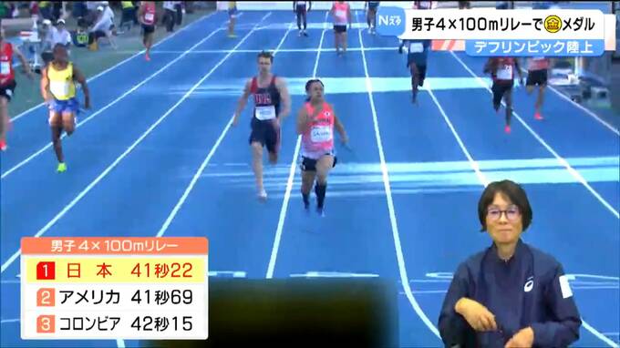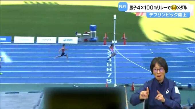 デフリンピック男子4×100mリレー決勝。日本は4レーン。