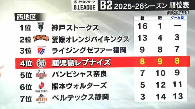 順位は4位に下がりました。次の試合は今度の土日、アウェーで東地区5位の岩手と対戦します。