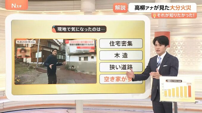 佐賀関は地元に寄り添うような地域で、高齢者率もかなり高くなっています。なので、逃げる際にも不安を抱えて、リスクになってしまう人たちも多くいました。また、住宅が密集していることや、木造住宅が多く、道路が狭いという地域の特徴が、避難する上ではかなりリスクになったのかなと感じました。