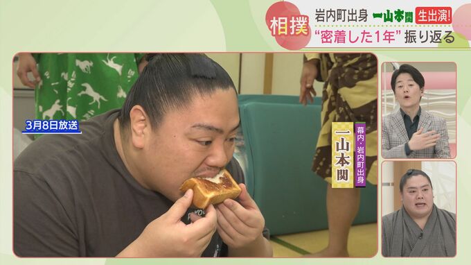 ちゃんこ鍋よりも「トーストが大好き」という意外な一面も明かし、「4枚切りを2枚」食べるといいます。枝豆ご飯も好物だといい、「意外だって言われます」と照れ笑いを浮かべました。