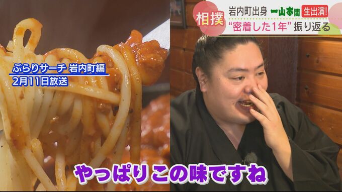 今年1年を通じて数多くの取材に応じた一山本関。初めてのスタジオ出演となったこの日、「ようやく来れた」と感慨深げに語りました。リモート出演からスタートし、食リポでは「猫舌なので…」と苦戦しながらも、飾らないキャラクターで人気を集めました。