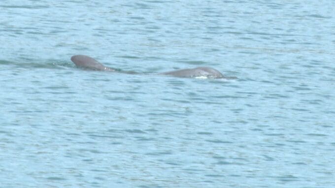 調理の途中にはハプニングも…。すぐそばの仙崎湾にイルカが姿を見せ、訪れた人も驚いた様子でした。