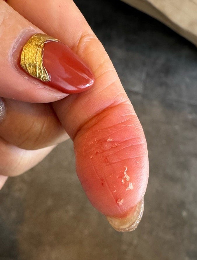 ブログには赤いネイルを施した指先の写真も掲載されており、指の皮膚状態からも「格闘の跡」が窺えます。