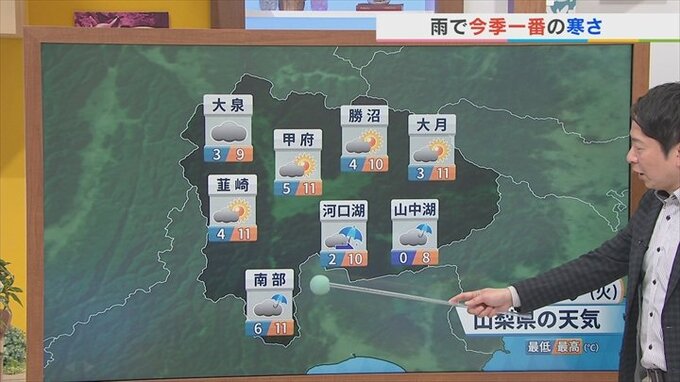 米津龍一気象予報士:あすのお天気ポイントはこちらです。雨で今季一番の寒さとなりそうです。気温が上がった分ちょっと心配です。