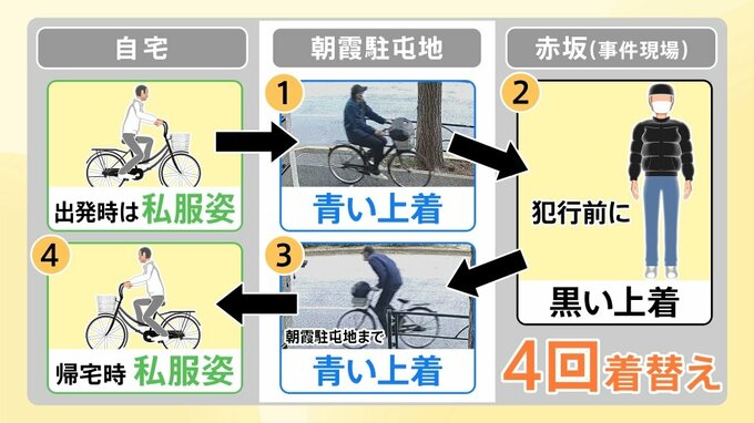 4回の着替え、靴を変える…容疑者の「逃げ切れるだろう」自信の表れか