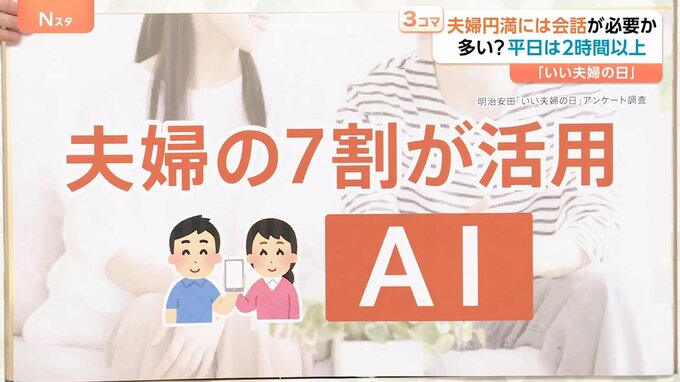 皆さんそれぞれの結果とはなりましたが、今回の調査では、こんな傾向もありました。夫婦の7割がAIを活用しているんです。何にAIを活用しているのでしょうか?