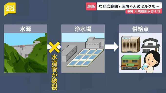 ところが24日午前3時ごろ浄水場へ水を送る水道管が破裂、水が送れなくなったのです。