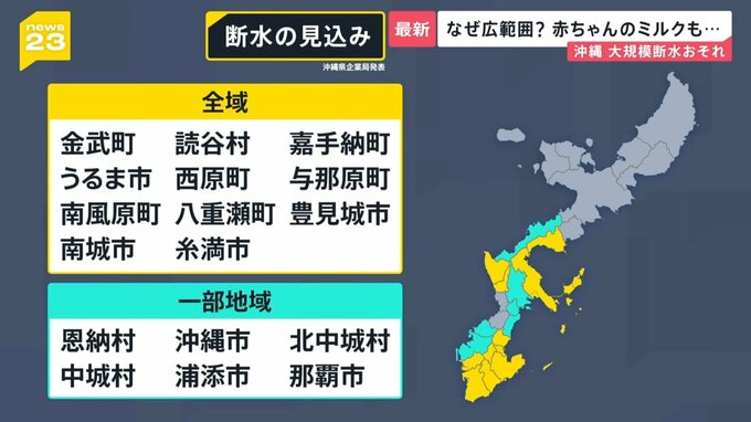 その原因は北部の大宜味村のダムから水の供給が止まったこと。