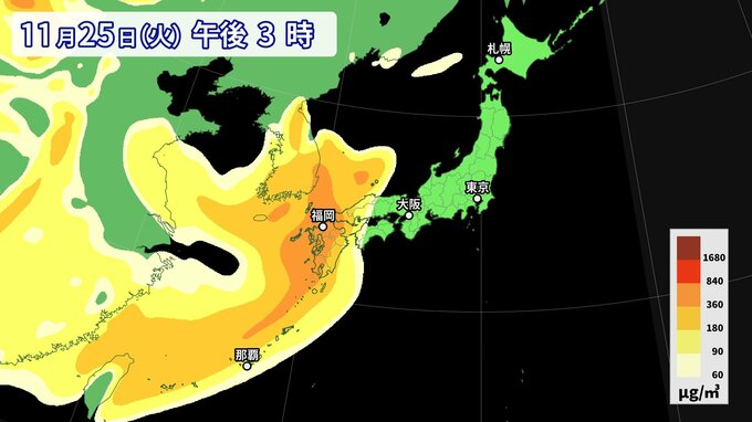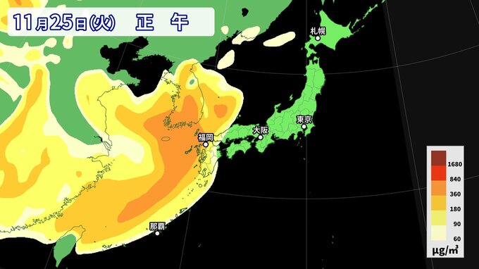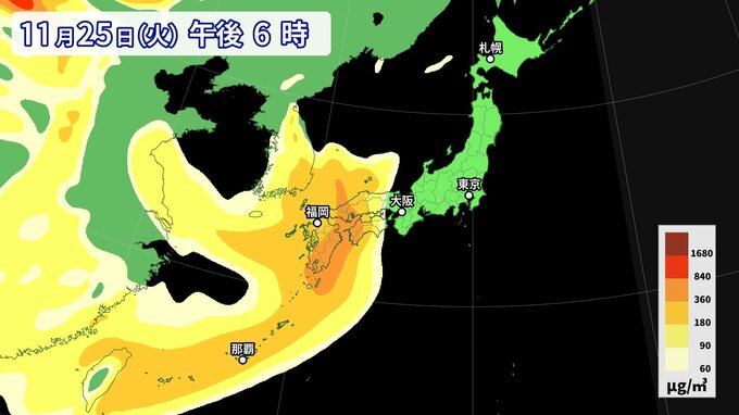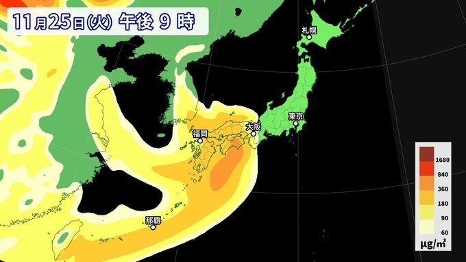 【黄砂情報】11月なのに黄砂…26日にかけて西日本から南西諸島の広い範囲に影響か 週後半にも再び飛来の可能性【最新・黄砂シミュレーション】
