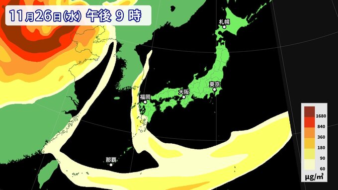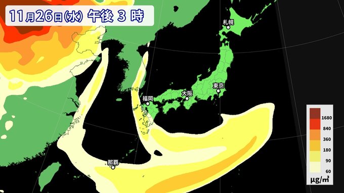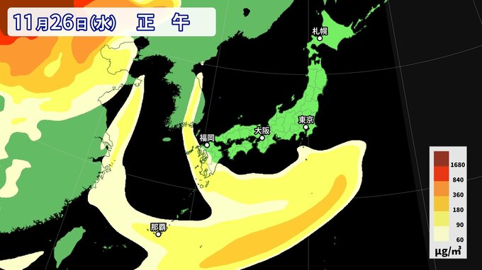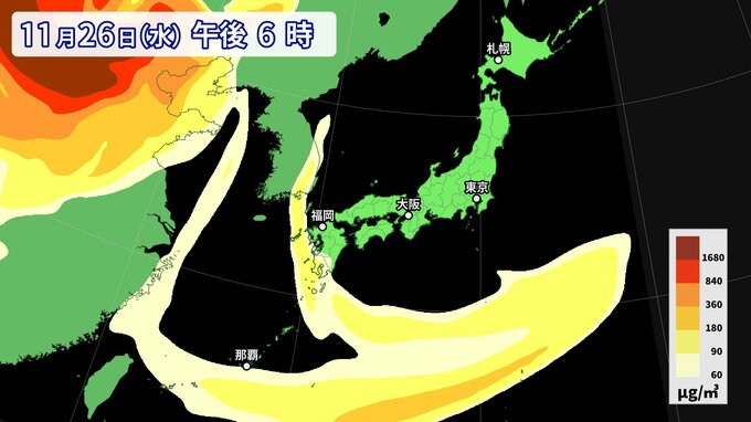 【黄砂情報】11月なのに黄砂…26日にかけて西日本から南西諸島の広い範囲に影響か 週後半にも再び飛来の可能性【最新・黄砂シミュレーション】