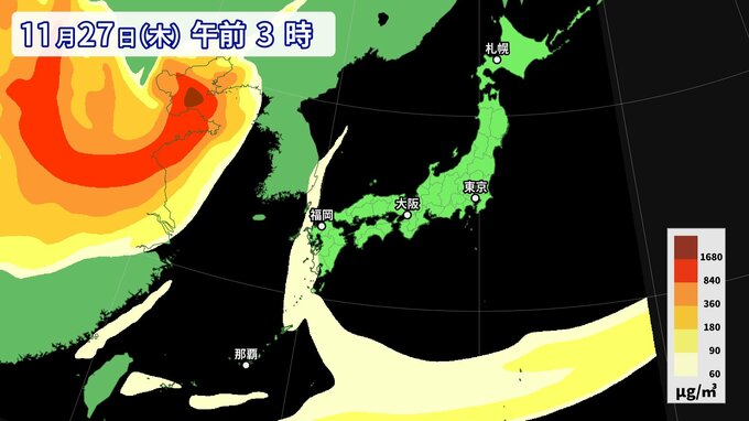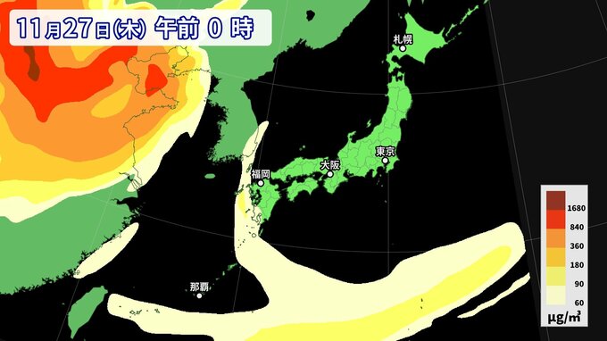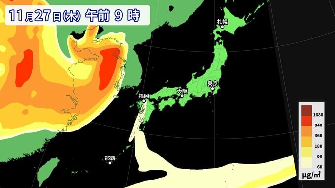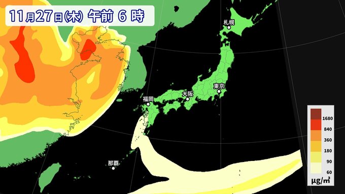【黄砂情報】11月なのに黄砂…26日にかけて西日本から南西諸島の広い範囲に影響か 週後半にも再び飛来の可能性【最新・黄砂シミュレーション】